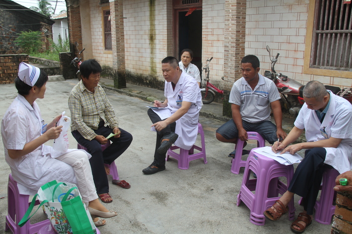 根据市卫生局健康扶贫要求,10月17日,我院由王会宽副院长带队,神经内科、心血管内科、肾内科、呼吸内科、肿瘤内科、骨科、眼科等专科的医疗专家共14人到达烟塘卫生院开展“送医送药送温暖,健康扶贫行动”。行动现场,我院医疗专家仔细为贫困患者查体、测量血压及血糖、解疑答惑、指导用药以及正确的生活方式,同时向患者及乡亲邻里普及国家医保的惠民政策。 此次行动,我院医疗队共到访11户人家,为15位贫困患者开展一对一的走访,免费赠送药品计2000余元,发放宣传材料100余份。